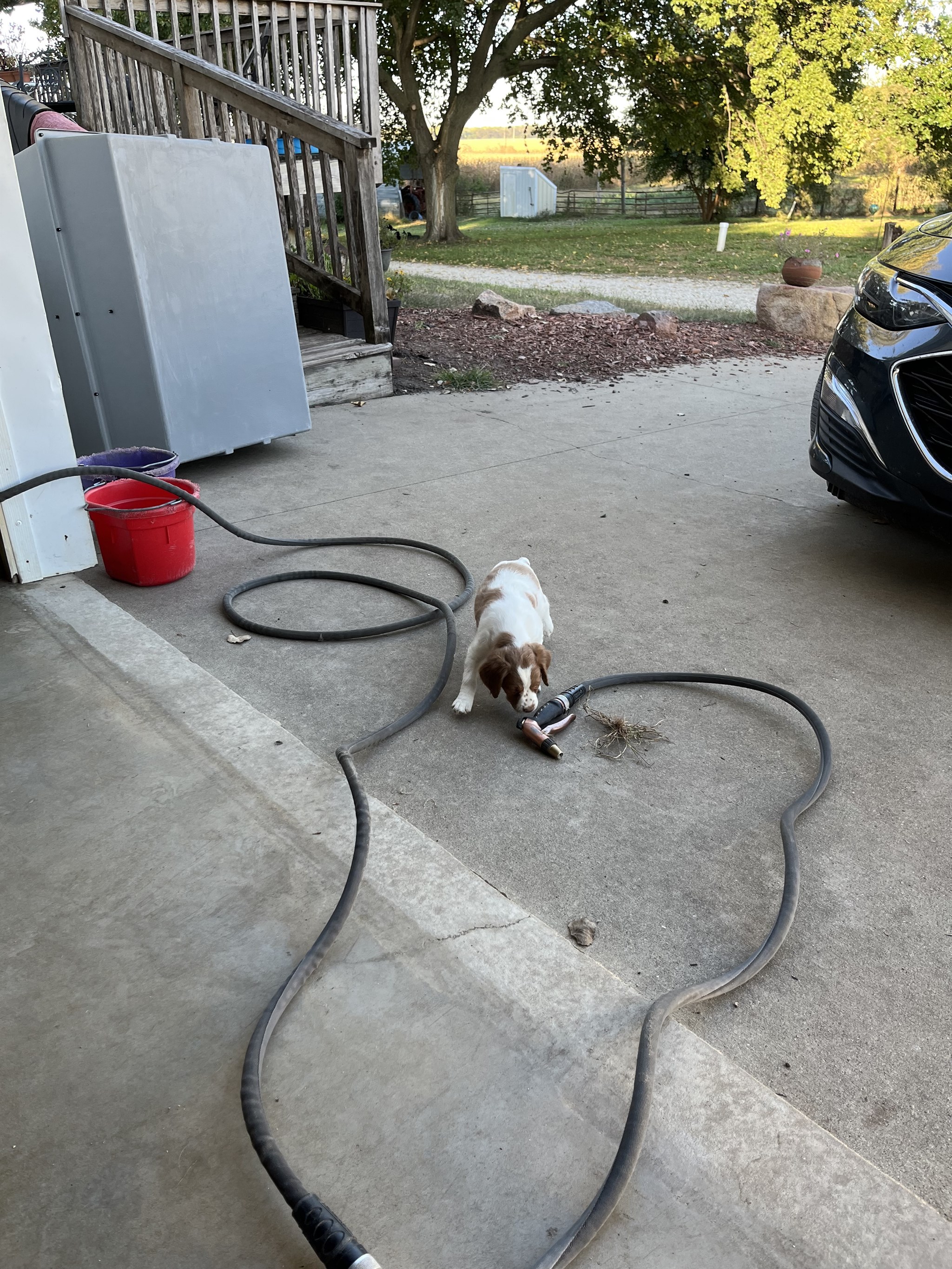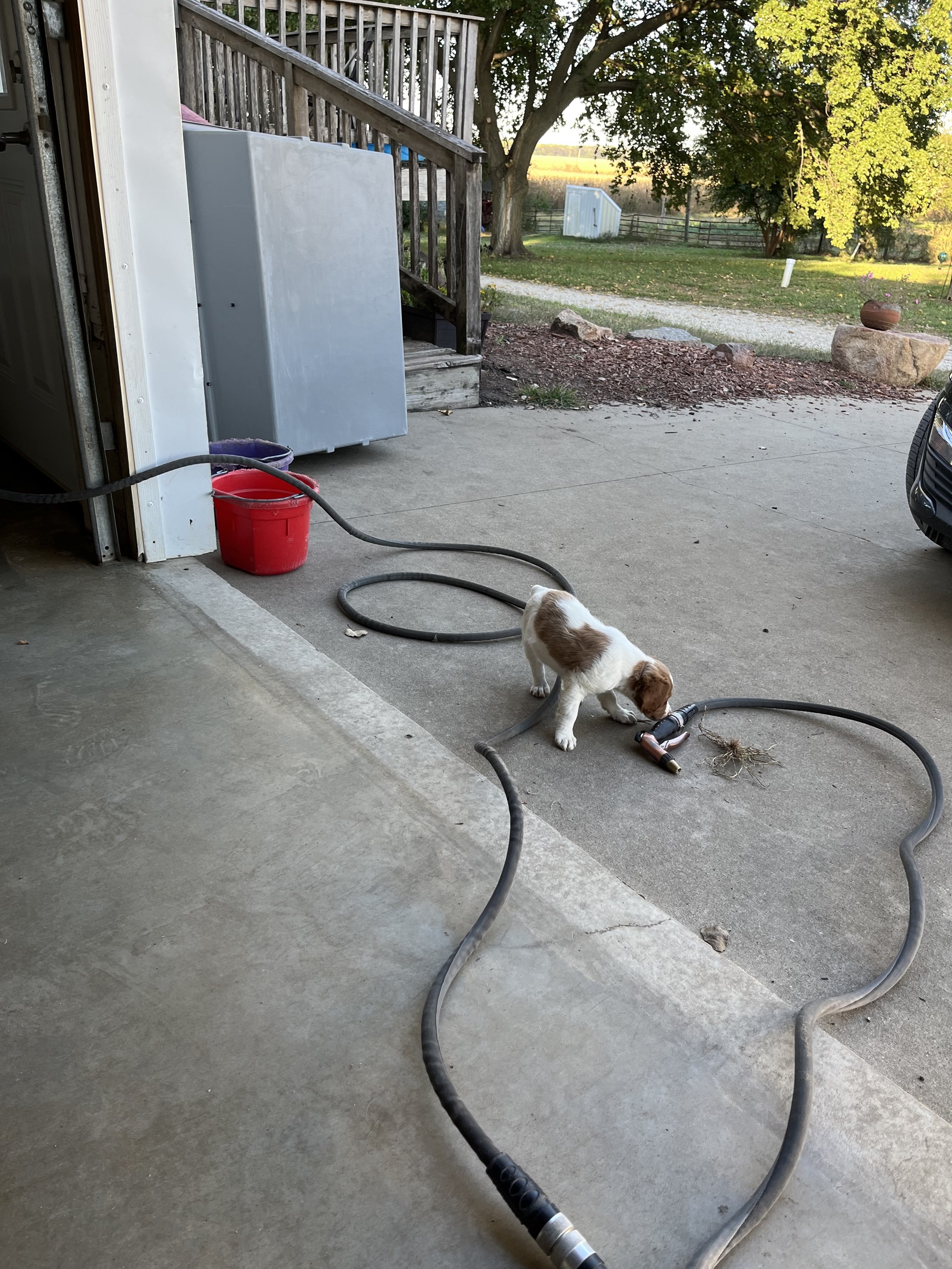 Dolly is very playful and curious. The hose was something to explore. She is loving and loves being snuggled.